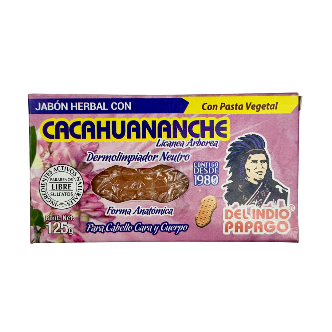 Del Indio Papago Jabón Herbal con Cacahuananche Para Cabello, Cara y Cuerpo 125g